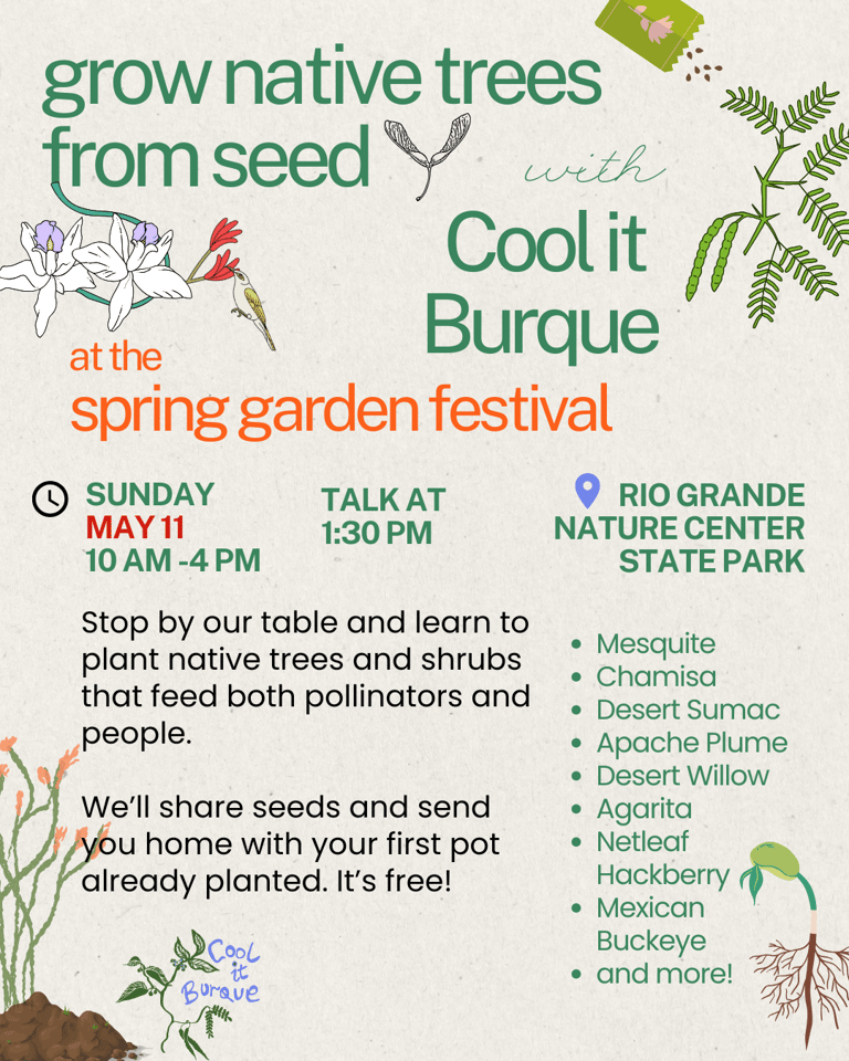 This is a low cost, low input, high impact way to support your community and local ecosystem! Don’t have a place to plant your tree? Ask your neighbors, or, the sapling can be used for a future Cool It Burque project once it’s grown a bit bigger under your care.