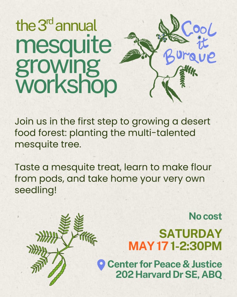 Join us for a workshop all about mesquites, where we will walk you through the steps to grow them from seed. You’ll get to eat a mesquite pancake, learn to process mesquite pods, and take home your very own baby mesquite tree.